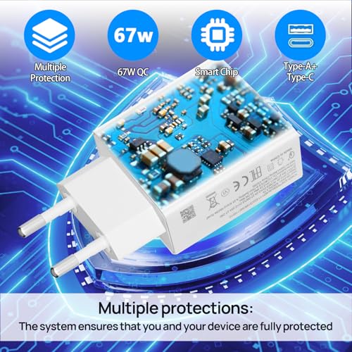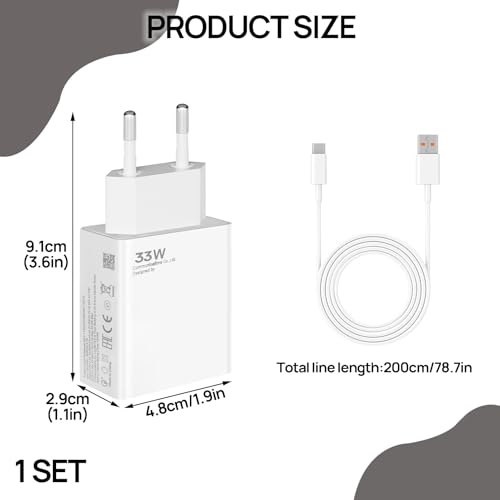 - [Charger for Xiaomi]This xiaomi 33W fast charger is slim and portable, you can easily put it in a backpack or handbag, and the 2m long cable allows you to charge more easily on different occasions. You can easily provide a safe and reliable power supply near the bed, under the table and next to the sofa