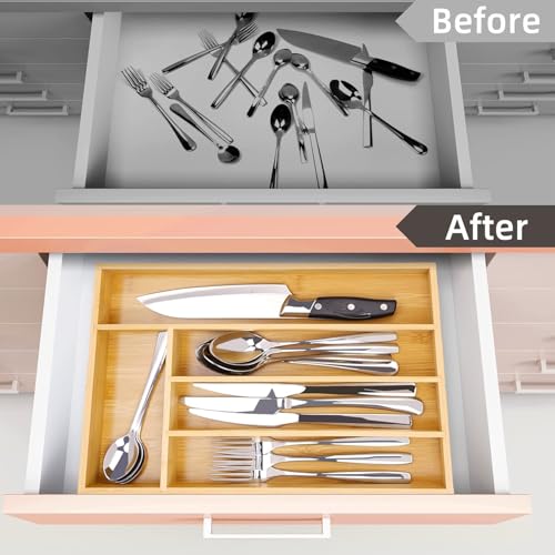 - 【خيزران ممتاز مثالي】منظم أدوات المائدة الخاص بنا في الدرج مصنوع من الخيزران الطبيعي الذي نما لأكثر من 4 سنوات. كل منظم أدوات مائدة من الخيزران للدرج مصنوع يدويًا على يد كبار الحرفيين لضمان سطح أملس بدون نتوءات. تحافظ المادة الصديقة للبيئة على أدوات المائدة والأواني الخاصة بنا مقاومة للماء والرائحة. هذه هي أفضل الهدايا المنزلية، يرغب الجميع في الحصول على مثل هذه الهدايا العملية لمنظم الأدراج في المنزل.