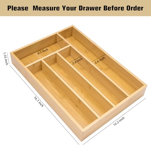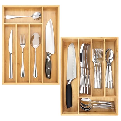 Buaic - منظم أدوات مائدة بامبو ومنظم درج مطبخ 41 × 31 سم للمعالق والشوك والسكاكين وأدوات المائدة بـ 5 فتحات من بيوايك، عبوة من قطعتين، لون طبيعي