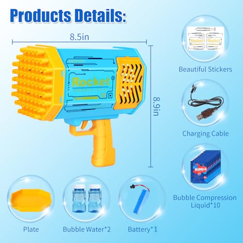 - 【العديد من الفقاعات】يُنتج كمية هائلة من الفقاعات، هذه الماكينة لصنع الفقاعات ستجعلك تقول بالتأكيد «واو» عندما ترى كم عدد الفقاعات التي تتطاير منها. هذا المسدس مزود بـ 69 فتحة وهو المقدار المثالي بالفعل.
