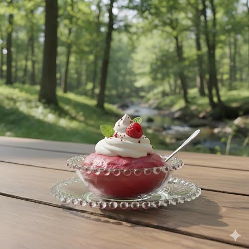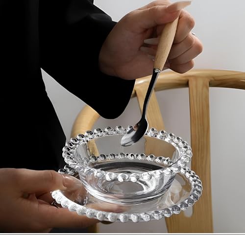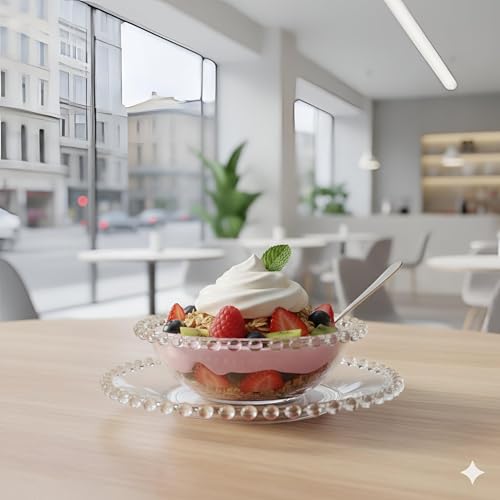Generic - Bubbles Bowls Set - A 12-piece glass set with Bubbles letters, 6 bowls and 6 plates, perfect for serving desserts and rice pudding and serving guests with luxurious elegance