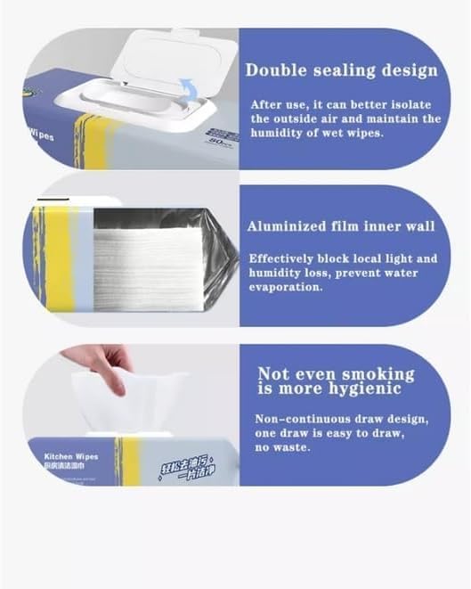- ✅【باكت اقتصادي】كل باكت يحتوي على 80 منديل مبلل، مما يوفر كمية كافية للاستخدام اليومي المتكرر ويجعلها اقتصادية ومناسبة لجميع أفراد الأسرة، مع ضمان الاستفادة القصوى من كل منديل في إزالة الدهون والزيوت والبقع دون هدر، لتكون المناديل أداة موثوقة للحفاظ على نظافة المطبخ بشكل مستمر وفعّال. 💰