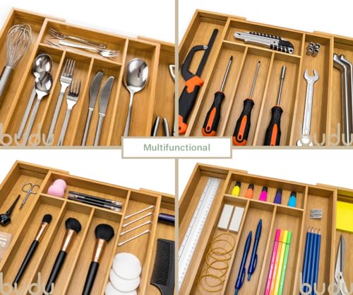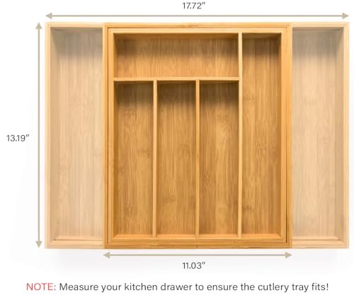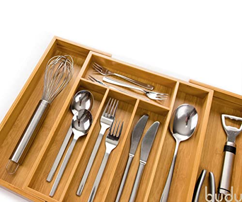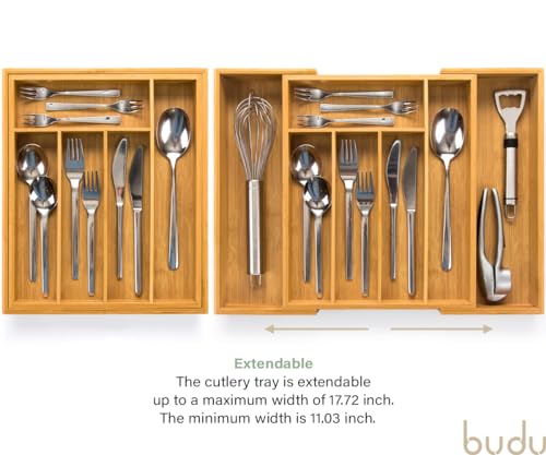 budu - budu Cutlery Tray #33.5 (Depth 33.5 cm) Made of Bamboo - Drawer Organiser System for the Kitchen - Cutlery Tray for Bamboo Drawers - Extendable - Kitchen Drawer Organiser - Kitchen Organiser