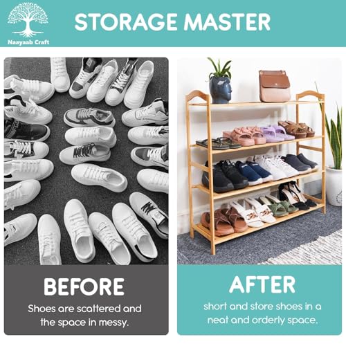 - Our 4 tier bamboo shoe shelves organizer consists of 4pcs layer frame and 2pcs frame, very easy to assemble, just fix these 6 parts with screws, no instruction and assembling experience needed.