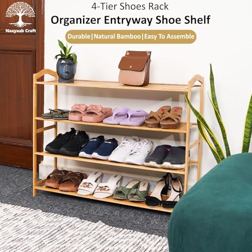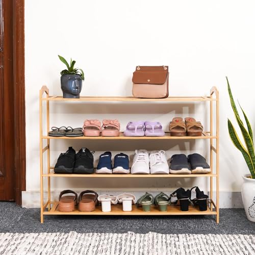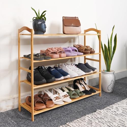 BuenoVida - BuenoVida Bamboo Shoe Racks 4 Tier Shoes Storage Shelf, Multi-Functional Shoe Storage Organiser Rack, Shoe Tower Shelf for Living Room, Entryway, Hallway - (89 x 23 x 69cm) - Natural Wood