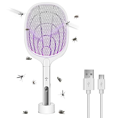 Spaceshoop - صاعق حشرات كهربائي 3000 فولت للاستخدام الداخلي والخارجي، مضرب قاتل البعوض قابل لإعادة الشحن بمنفذ USB (ألوان متنوعة)