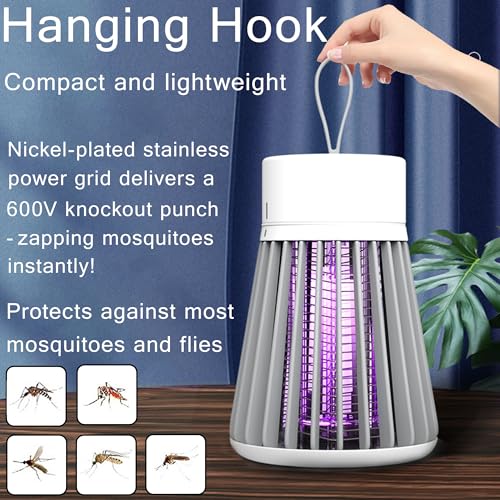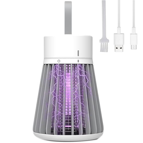 Generic - صاعق حشرات محمول للتخييم في الهواء الطلق، صاعق بعوض لاسلكي، صاعق ذباب داخلي قابل لاعادة الشحن، طارد للبعوض مع شبكة امان، قاتل البعوض بشحن USB للاستخدام في الاماكن المغلقة والمفتوحة، رمادي