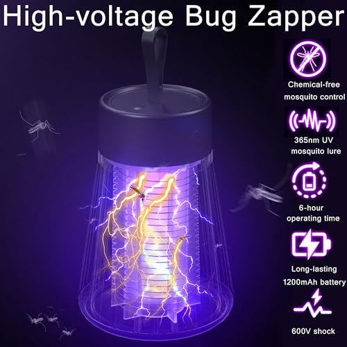 - 【صاعق حشرات محمول】: صغير ورائع وسهل الحمل. يسمح لك حجمها الصغير وتصميمها الرائع بحملها في أي مكان تريده. خيارات وضع مرنة مع حلقة تعليق وقاعدة ثابتة على سطح الطاولة. مثالية للباحات والجراجات والأسطح والمغامرات الخارجية.