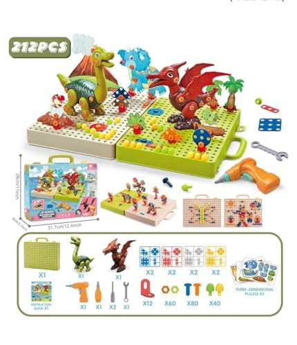 Generic - صندوق مكعبات البناء هذا المكون من 212 قطعة يتضمن اثنين من تماثيل الديناصورات ومسامير واشكال مختلفة