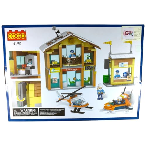 - محتوى المجموعة: تحتوي على 581 قطعة بناء لتركيب مجموعة مدينة بولار إن الكاملة مع فندق ومحطة تزلج ومروحية وقارب ثلجي