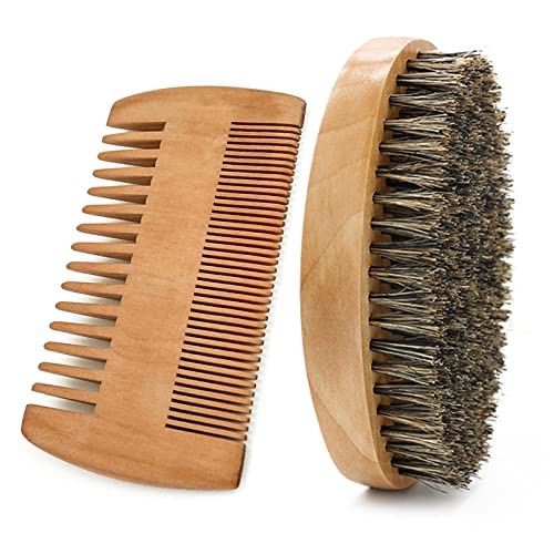 Bukela - 2 Pcs Beard Brush and Comb Set for Men - Wooden Hair and Moustache Grooming Kit for Combing, Removing Debris, and Massaging Face