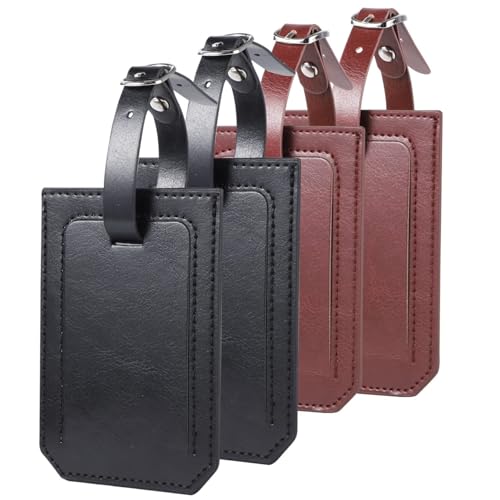 Bukela - Luggage Tag, 4 Pcs Pu Leather Travel Suitcase Tag Handbag Tag to Prevent Loss of Luggage and Suitcases When Going Out on a Trip(Black + Brown)