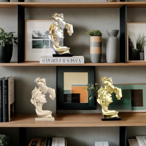 Bukela - The Kissing Lover Statue for Home Decor Accents, Art Decorations for Living Room Bookshelf TV Stand Bedroom, Office Decor for Men, Romantic Wedding for Women, Champagne