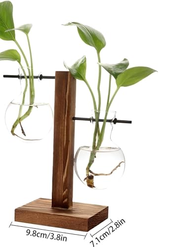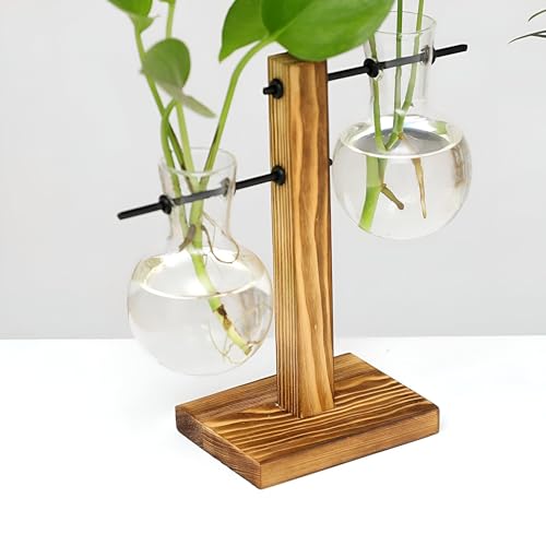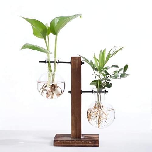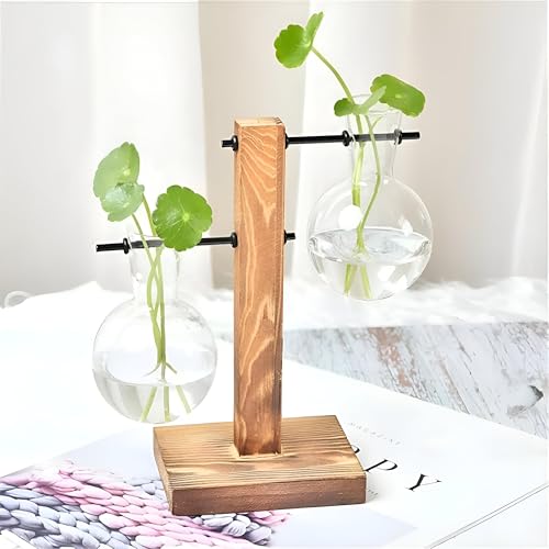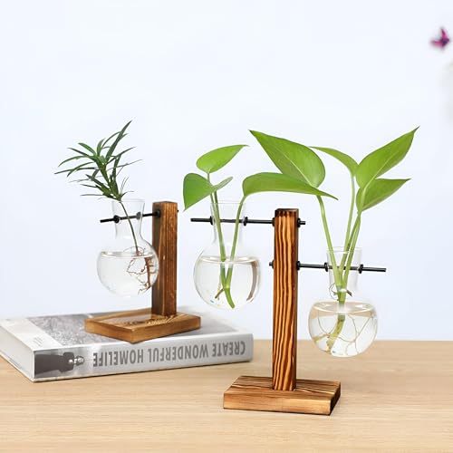 Generic - Bulb Shaped Floral with Durable Wooden Holder - Stylish Glass Lamp Shaped Design with Strong Wooden Holder for Unique Home and Office Decor (model 2)