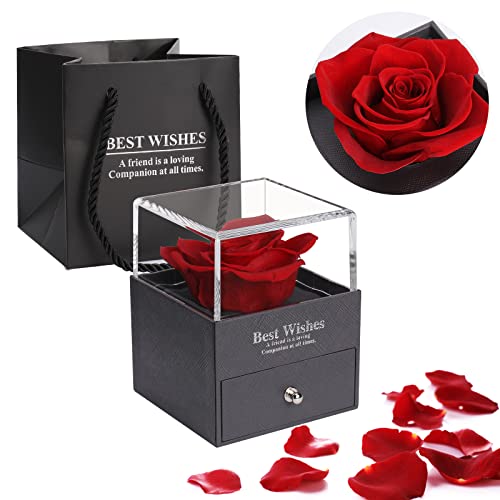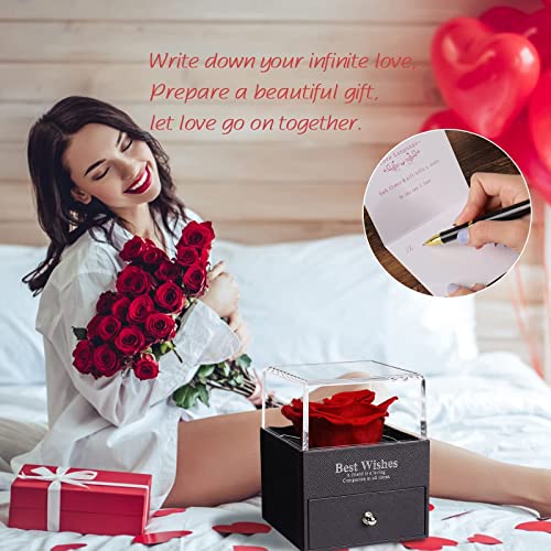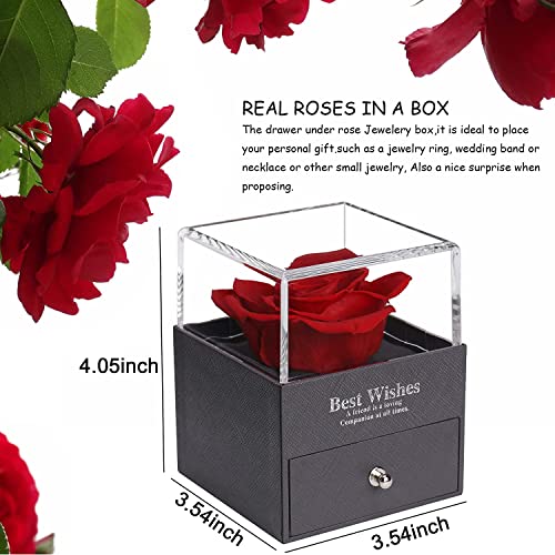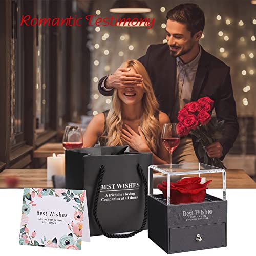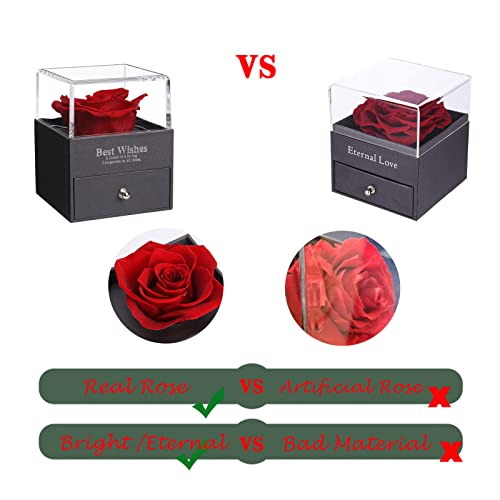 - 💕[Fashionable and elegant gift box]: Our eternal rose gift box is made of high-grade leather-filled paper material, combined with clear hot stamping technology, high-end and durable. In addition, the transparent upper cover and selected high-quality roses make the gift box more fashionable and elegant. The sliding drawer box design is convenient for you to store small gifts.