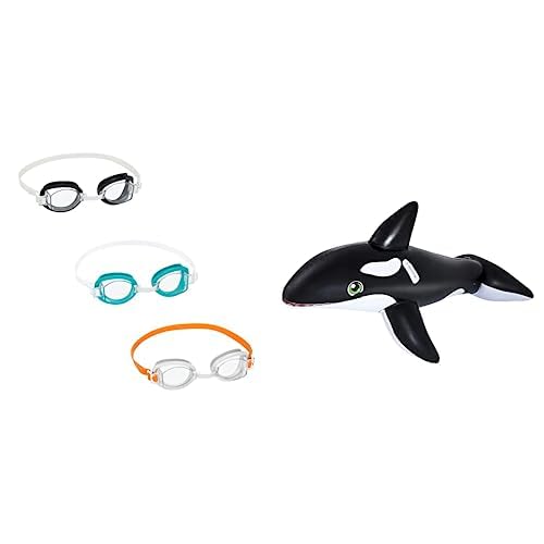 Bestway - Bundle Bestway swimming goggles + Bestway bw41009-20 jumbo whale pool float, inflatable rubber ride on for kids, swim aid