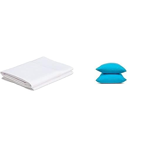 Snooze - Bundle Of Pillowcases, 2 pcs, 50 * 70 cm, plain White + Home of linen-cotton pillow case set, size 50 * 70cm, turquoise
