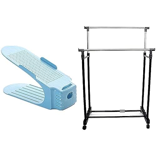 Generic - Bundle Set of 10 pcs shoe slots organizer blue + Leostar cd-1203 double pole telescopic clothes hanger rack, black