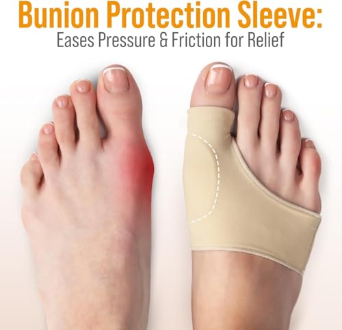 Generic - Bunion Correction Sleeves Pair - One Size Adjustable Bunion Corrector with Gel Pad - Toe and Foot Friction Protector - Elastic Shoe Protector, Shield, Gel Pad - Beige