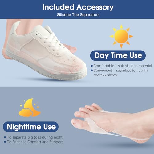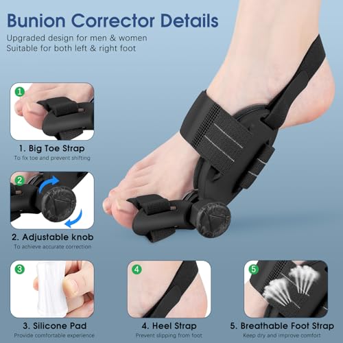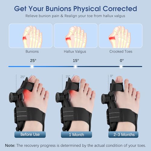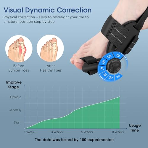 - Bunion Relief & Toe Alignment: This orthopedic bunion corrector also acting as a toe separator or a toe straightener can effectively reduce bunion pain and relieve discomfort on the big toe for both men and women. Besides, different from traditional toe splint, this upgraded bunion fix can pull your big toe apart from other toes by adjusting the knob to a precise angle based on your bunion severity, so as to correct toes with hallux valgus symptoms and keep your toe alignment