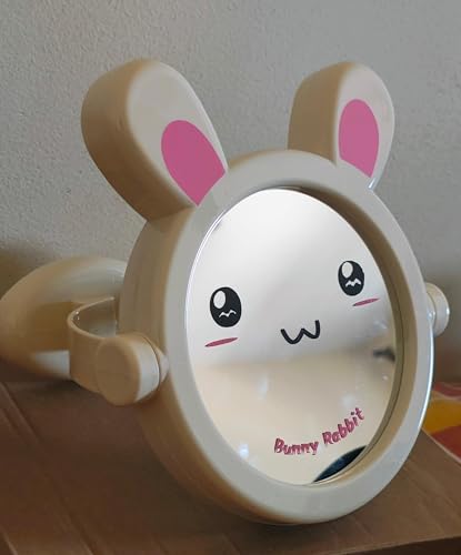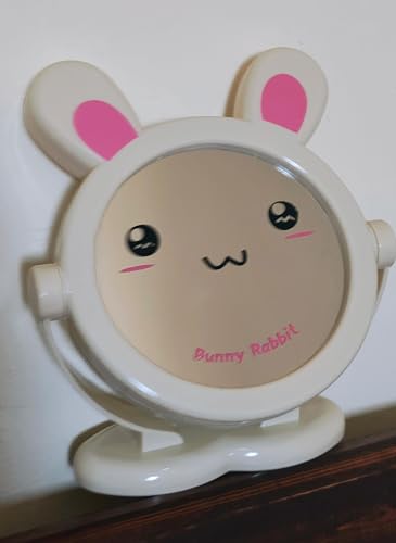 - DESIGN FEATURES: Adorable bunny-themed vanity mirror with cute kawaii face design, pink ears, and rotating stand for versatile viewing angles