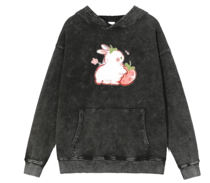 Generic - bunny rabbit cute kawai washed acid gray hoodie sweatshirt 15