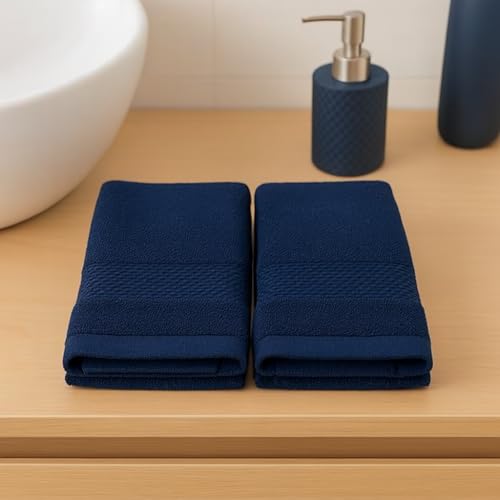 Burak Tekstil - فوطة مصنوعة من القطن بنسبة 100% من براق تكستيل، طقم من قطعتين (لون أزرق كحلي، فوطة وجه (مقاس 30 سم × 30 سم))