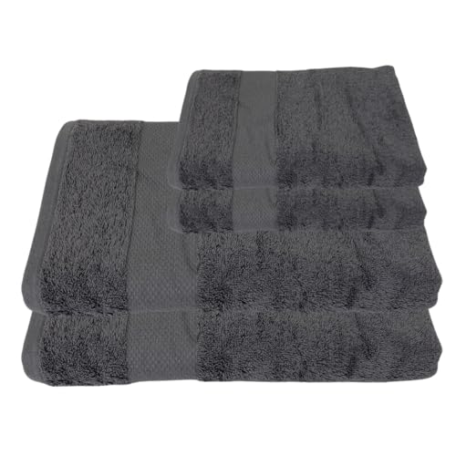 Burak Tekstil - طقم مناشف من بوراك تكستيل مصنوع من القطن، لون رمادي، منشفتان للحمام 170 × 40 سم ومنشفتان للوجه 30 × 30 سم، 4 قطع فائقة الامتصاص