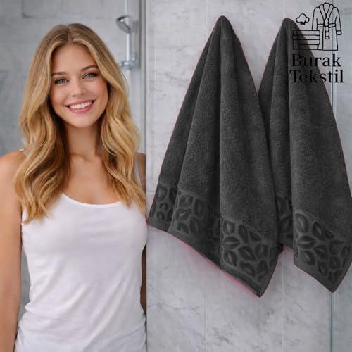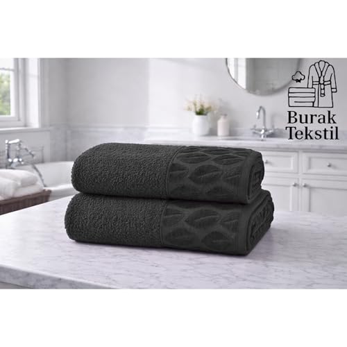 Burak Tekstil - Supreme Egyptian Cotton Hand Towel Set, White, Ultra Soft, Highly Absorbent, 100 x 50 cm, 2 Piece, Made in Egypt (Gray, 2 Hand towels (100x50 cm)))