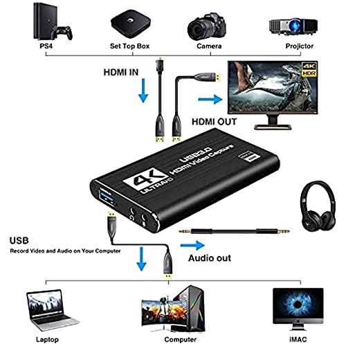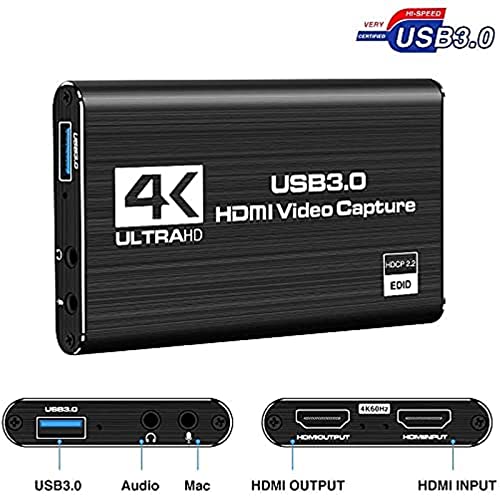 BURDEAN - بطاقة التقاط فيديو 4K، جهاز التقاط فيديو وصوت USB 3.0 1080P 60 اطار في الثانية، محول فيديو محمول لبلاي ستيشن 4 وXbox لبث الالعاب المباشر والاذاعة والتدريس