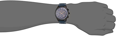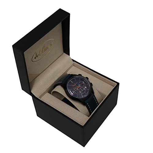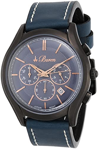 Buren - ساعة جلد بجزء خلفي ستانلس ستيل واطار اسود من بورين، ساعة توقيت وعداد للتاريخ وعداد ثواني للرجال، لون كحلي واسود، موديل BU82028M, كحلي واسود