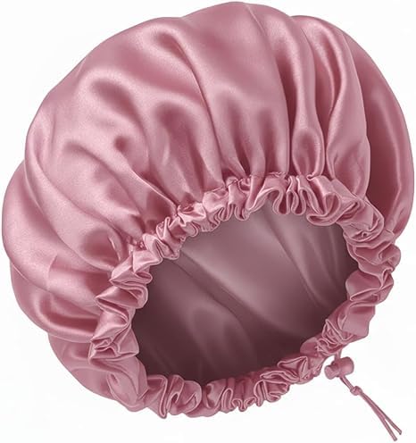 Generic - Burgundy Red Satin Hair Cover with Double Ruffled Edge, One Size Adjustable, Sleep Hair Protection