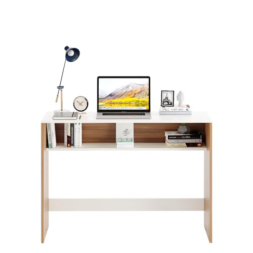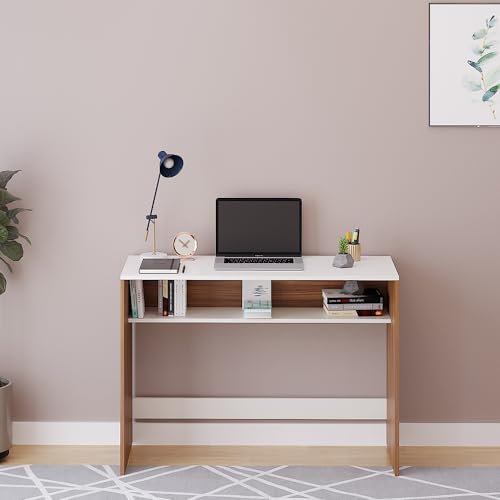 Burlyworth - Burlyworth Witely Engineered Wood Study Table, Workstation, Computer, Laptop, WFH Office Desk, Gaming Table with Storage, Standard, 80cm (Exotic Teak & White)