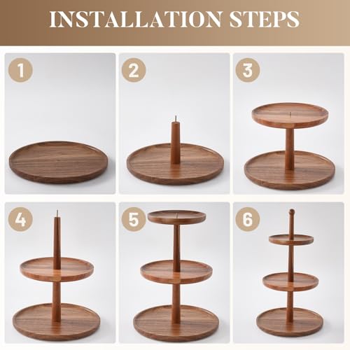 - Complete Set With Storage Bag & Available In 2 Sizes: Your dessert display stands include: 1 storage bag, 3 anti-slip stickers, 3 soft gaskets, 3 acacia wood plates, and a 3-layer acacia wood shaft combination (2-in-1 adjustable height). Available in two size options to fit any table, counter, or event setup.