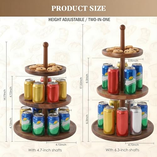 - 2-In-1 Adjustable Height Design: Experience true versatility with the BURMAN Multi-Functional 3 tier serving tray, crafted from premium natural acacia wood. Easily switch between two height options by attaching the long or short rods, perfect for displaying taller treats, pastries, or decor. Use it as a single-tier, 2-tier, or full 3-tier stand depending on your occasion.