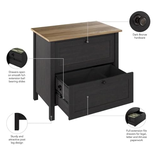 Bush Home - Bush Furniture Mayfield 2 Drawer Lateral File Cabinet | Storage for Home Office Workspace, Vintage Black/Reclaimed Pine