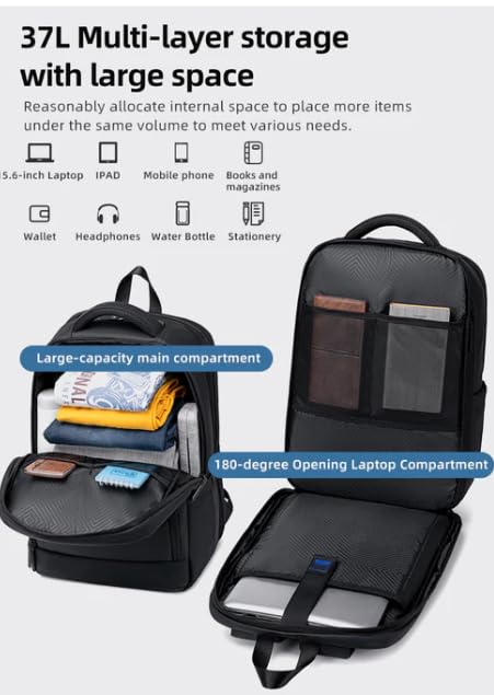 Business Laptop Backpack, 15.6-inch, Large Capacity, Water-resistant, Black, 46.5x31.5x25.5 cm