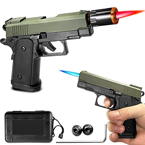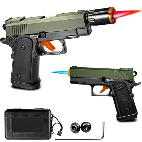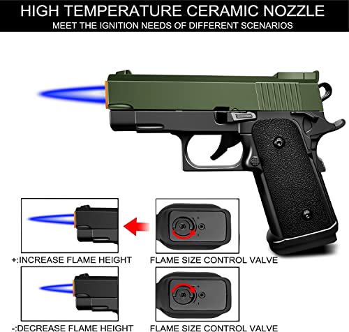 - موثوقة وآمنة -- طول: 15 سم. الارتفاع: 10 سم، ولاعة شعلة البوتان الرائعة هذه مصنوعة من خليط الزنك + النايلون، (ترقية جديدة بمقابض قابلة للإزالة قابلة للاستبدال مع أدوات إزالة)، خفيفة وسهلة الحمل. تحاكي تصميم تخفيف الضغط، حقيقي ومثير للاهتمام. تتميز ولاعة الشعلة هذه بأنّها هي خيارك الأفضل لخبز الكيك وإضاءة الموقد والشموع والنزهات الخارجية وحفلات الشواء.