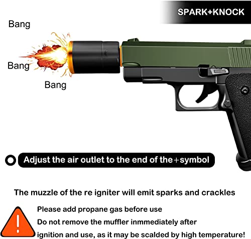 - لهب قابل للتبديل -- (1) بعد تركيب محول اللهب المعدني، اضغط بسرعة على المفتاح وسيتحول اللهب الأزرق إلى لهب أحمر. (2) أدر مخرج الغاز تماماً باتجاه رمز (+)، ثم اضغط ببطء على مفتاح التشغيل حتى تسمع صوت فرقعة وتظهر الشرارة. هذا المنتج مصمم ليلبي احتياجاتك في مختلف الاستخدامات، كما يمكن إعادة تعبئته بغاز البيوتان لضمان الاستخدام لفترات طويلة.