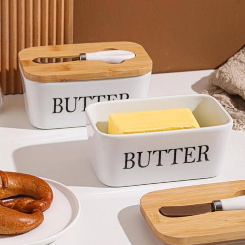 Generic - Butter Dish, Ceramic with Wood Accents, White