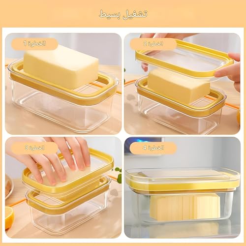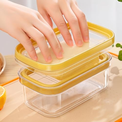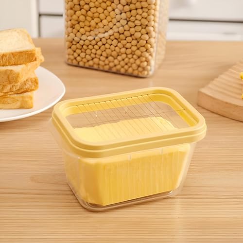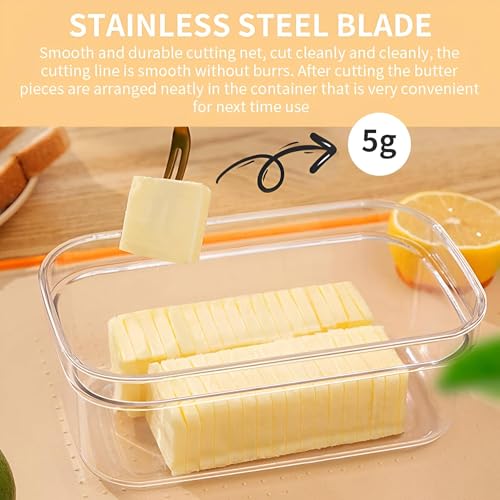 - This easy-to-use butter holder not only secures your butter for storage but can also serve as a convenient slicer. Simply place the butter block under the lid and press down to slice effortlessly. Designed to accommodate a variety of butter shapes and sizes, the highly transparent material showcases the butter content, enhancing organization in your kitchen or dining area. It not only keeps surfaces tidy but also adds instant comfort to your family life, making your butter usage more efficient.