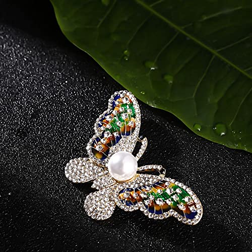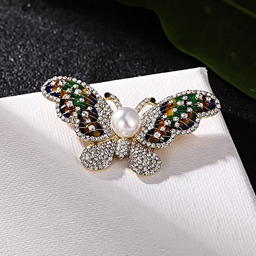 Generic - بروش على شكل فراشة مرصع باللؤلؤ والماس، بروش عصري مخصص مصنوع من خليط معدني على شكل حشرة حيوانات، دبوس بروش للوشاح والحقيبة والملابس للنساء، من الزنك، بدون احجار كريمة