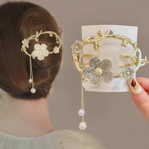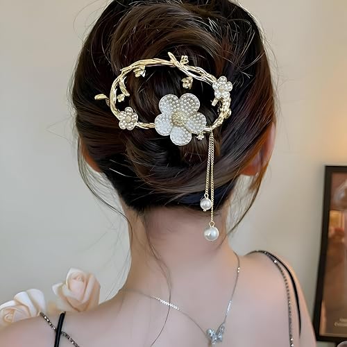 Generic - Butterfly Hair Stick with Pearl Dangles, Gold Metal, Crystal Embellished, Chinese Style Hair Pin - Elegant Daily Accessory for Long Hair (4model)