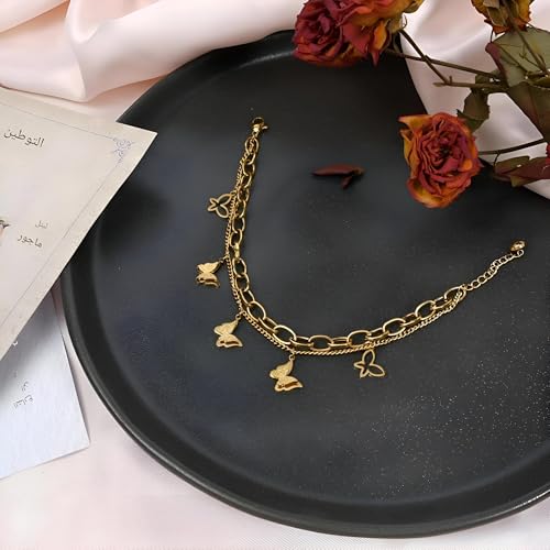 Generic - سوار على شكل قلب وفراشة، سوار بتصميم مذهل قابل للتعديل مع طلاء ذهبي، سوار مثالي كهدية مجوهرات عصرية بتصميم قابل للتكديس، سوار متين مقاوم للبهتان للنساء