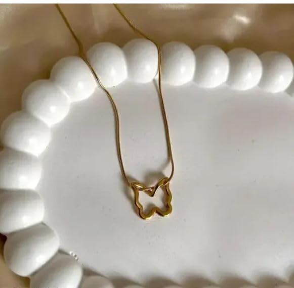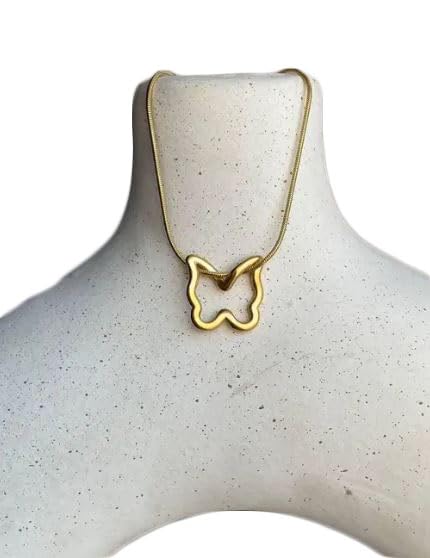 Generic - قلادة على شكل فراشة للبنات والنساء مطلية بالذهب من الستانلس ستيل 316l