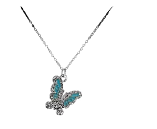 Generic - Butterfly Pendant Necklace with Blue Enamel Wings, Silver Chain, 45cm Length
