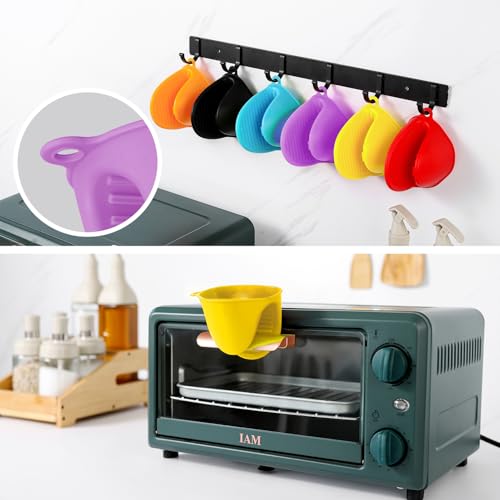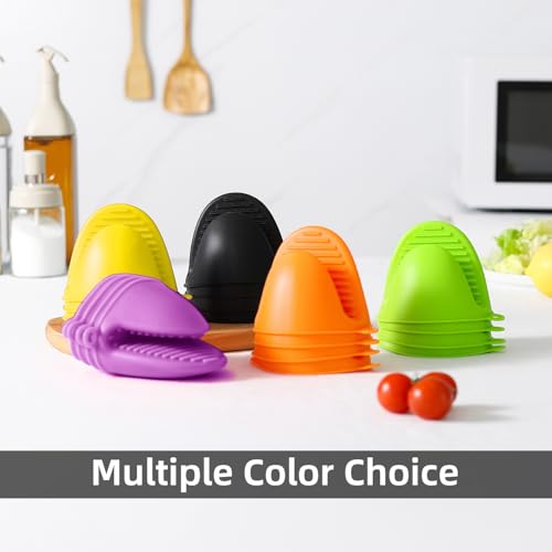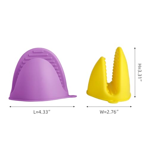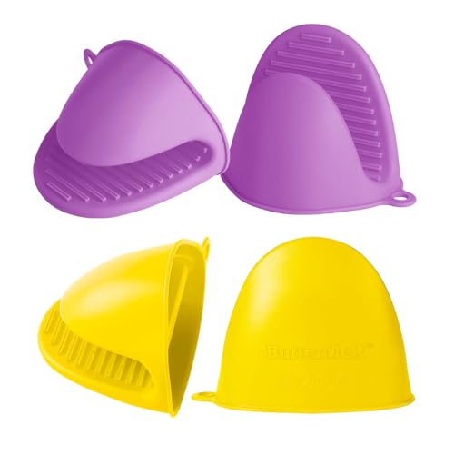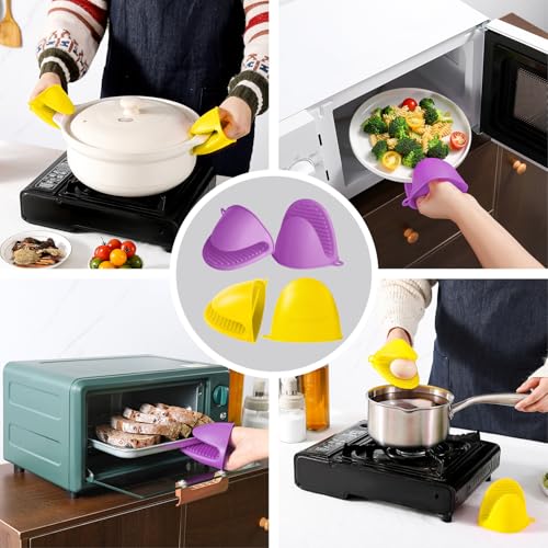 ButterMelt - 4PCS Oven Mitts, Silicone Pot Holders Heat Resistant, Mini Oven Gloves for Kitchen, Thickened Silicone Hot Pads for Cooking & Baking(Purple&Yellow)