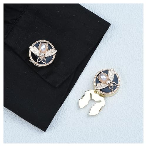 Generic - أغطية أزرار مزخرفة على شكل نحلة من اللؤلؤ مع مينا سوداء، معدن بلون ذهبي