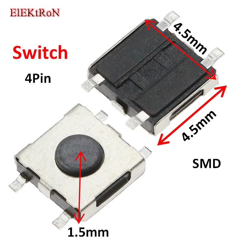 Generic - عدد 10 قطع من زر باور - Micro High performance Durable Tactile Push Button Momentary Power Switch 4Pin Tact 4P (4.5mm x 4.5mm x 1.5mm) SMD