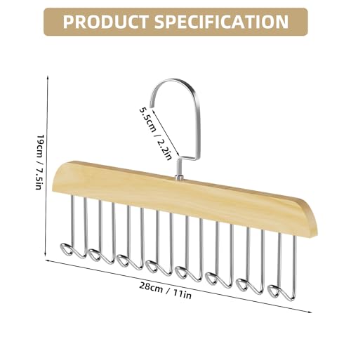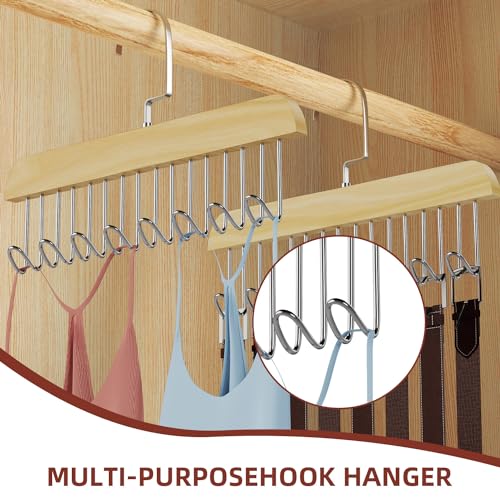Buwico - Buwico Belt Holder Wardrobe, Pack of 2 Wooden Clothes Hangers, Tie Holder, 360° Rotatable Tie Holder, Quality Hanger, Space Saving with 8 Sturdy Hooks, for Belt, Bow Tie, Scarf and Hat